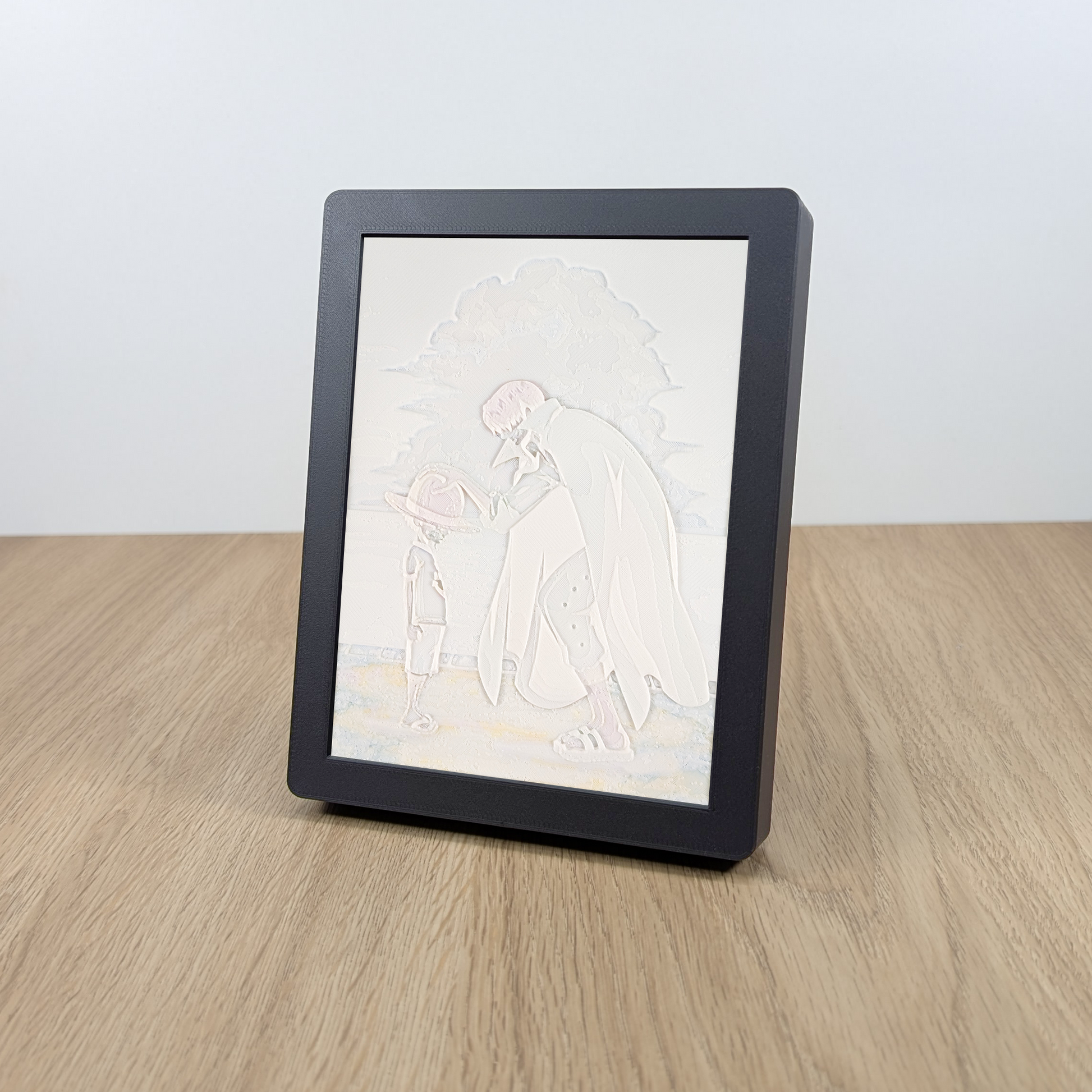 È completo di un quadro stampato anch'esso in 3D, che funge da supporto elegante e stabile, e include un pannello LED pronto all'uso. Basta collegarlo al cavo USB in dotazione e accenderlo tramite il pratico interruttore per ammirare ogni dettaglio che emerge con la luce.